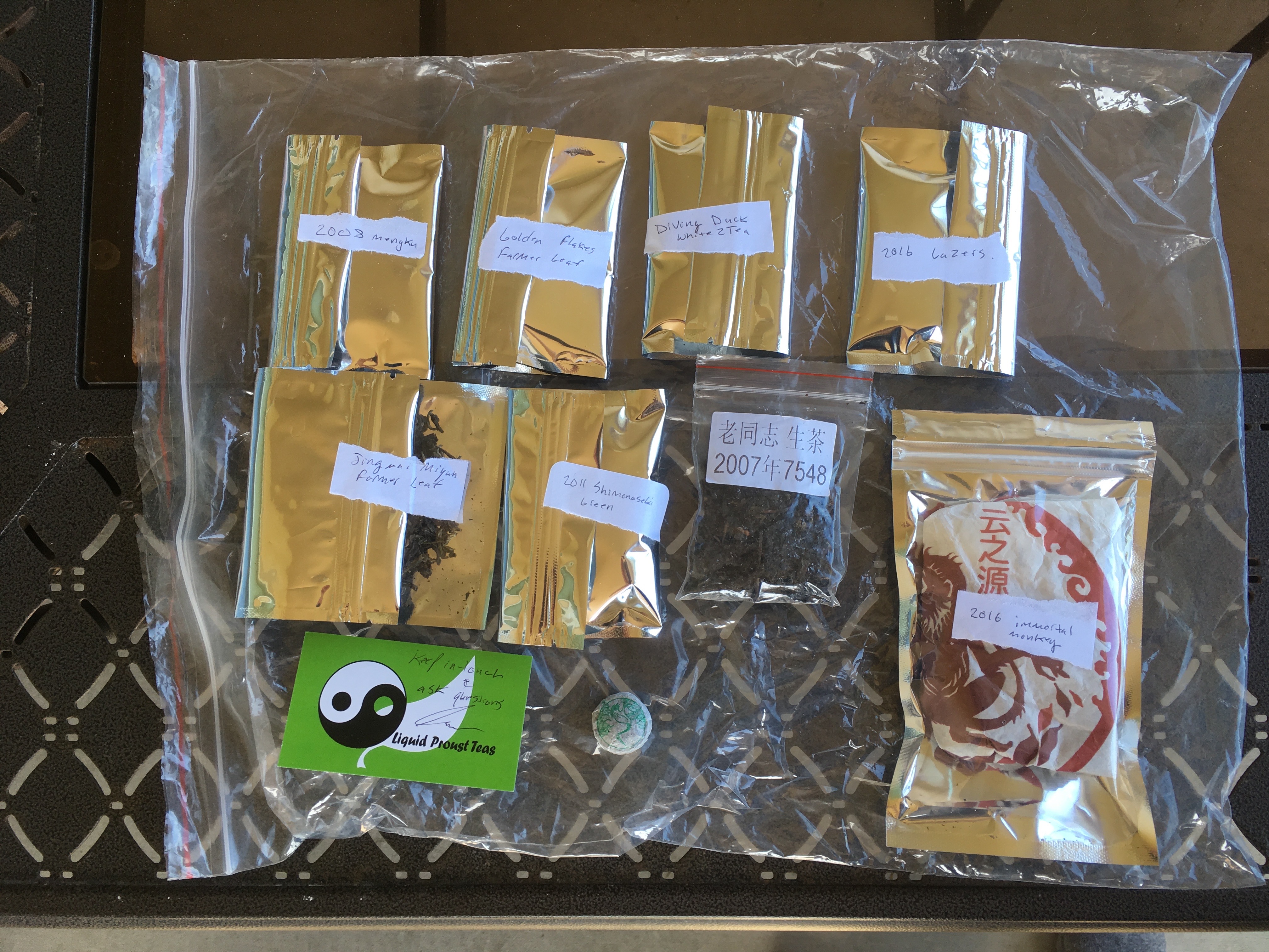 Back in December, I happened across a Reddit thread started by Andrew Richardson, owner of Liquid Proust Teas. In his quest to spread knowledge and awareness of Pu'er, he offered a virtually free (~$5 for shipping/labor) sampler of Pu'er to anyone that responded. Naturally, I took him up on his generous offer!